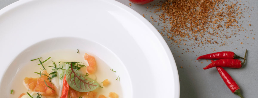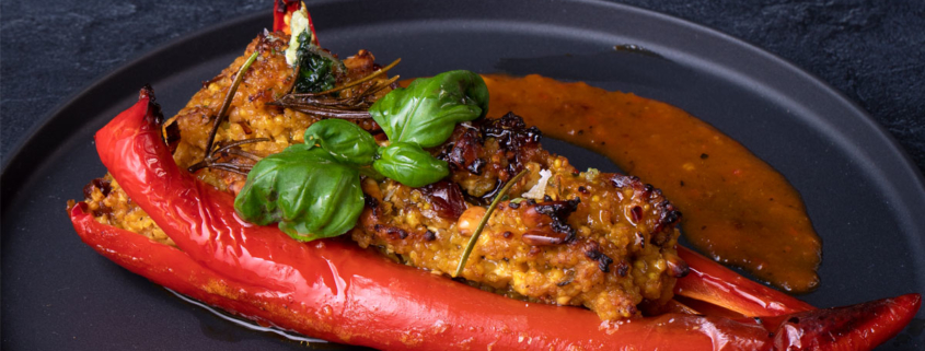 Johann Lafers Bio-Spitzpaprika mit Bio-Gewürz-Hirse, Datteln und Hüttenkäse gefüllt