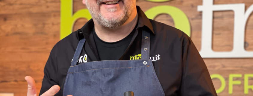 Stefano erklärt, dass unsere Bio-Granatapfelessigmischung eine Kombination aus biologischem Granatapfelsaft mit Most und Essig aus biologischem Anbau ist und ein rubinrotes „Elexier“ mit süß-saurem und zugleich fruchtigem samtig weichem Aroma ergibt. Der äußerst frische Geschmack ist der idelae Begleiter für saisonale Salate, Marinaden, weißes Fleisch, Fisch und vor allem Krustentiere.