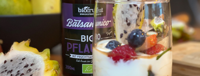 Ebenso lässt sich unser Bio-Balsamico PFLAUME fantastisch als Topping zu Joguhrt oder Müsli verwenden und passt ebenso perfekt zu: